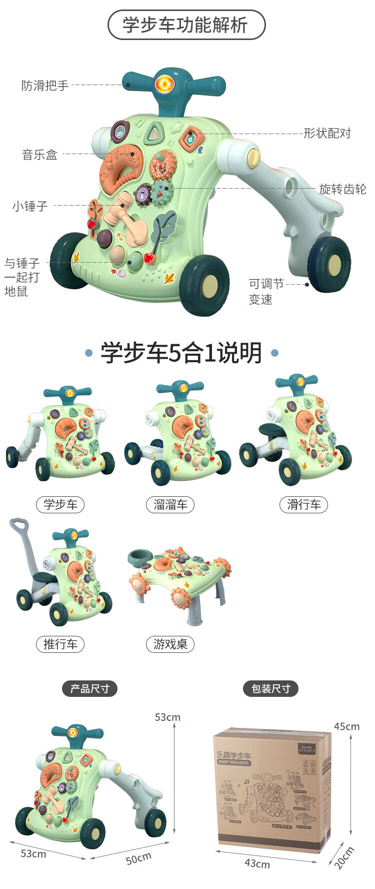 Guka Sit-to-Stand Learning Walker Stroller Baby Sit-to-Stand Learning Walker Toy Baby Multi functional Walking Stroller Anti roll Removable Mushroom House - Green