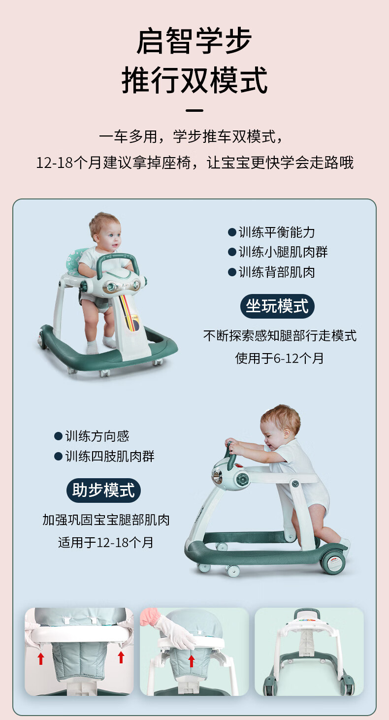 BIMObimo Baby Sit-to-Stand Learning Walker Anti O-shaped Leg Roll Over Multi functional toddler Stroller for both boys and girls - Standard Edition - Modern Green